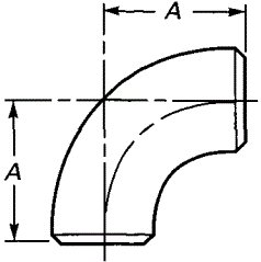 Technical Drawing of 90 Degrees Long Radius Elbow, Buttwelding(ASME B16.9)