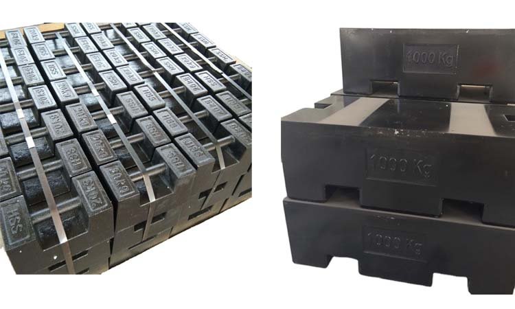 A test calibration weight/counterweight is a weight that, by applying an opposite force, provides balance and stability of a mechanical system.It is often used in traction lifts (elevators), laborator,cranes and medical calibration weights. IThe weight is made of cast iron steel, and the handle makes the test weight very easy to carry around.