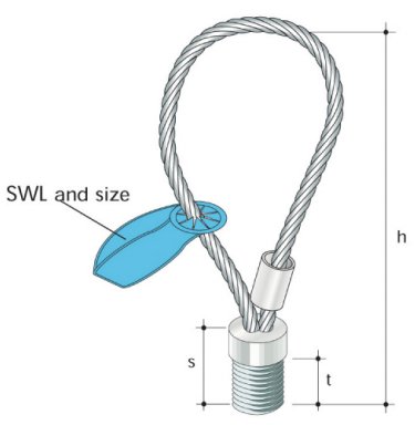 | Picture | Product Code | Thread Dia. | Full SWL (kg) | Dimensions | Wire Rope | ||
