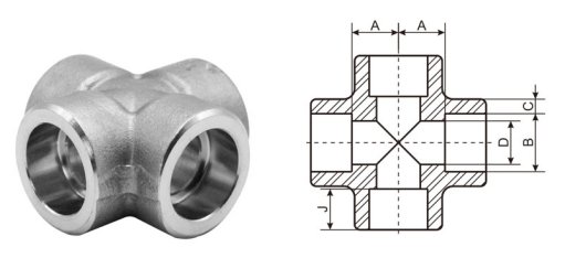 Socket Weld Cross:A cross pipe fitting is used to join 4 pipes or branch the pipes to 4 way.Put each pipes into each socket weld bores of socket weld cross,and welding them together to form a cross pipe line.